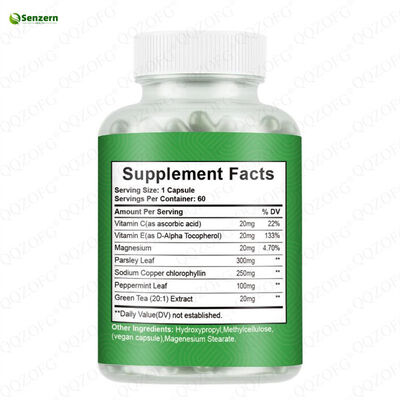 클로로필 캡슐 몸 전체 데오도란트 보충제 비타민 파스슬리 미생물 조절, 마그네슘 내분신 조절